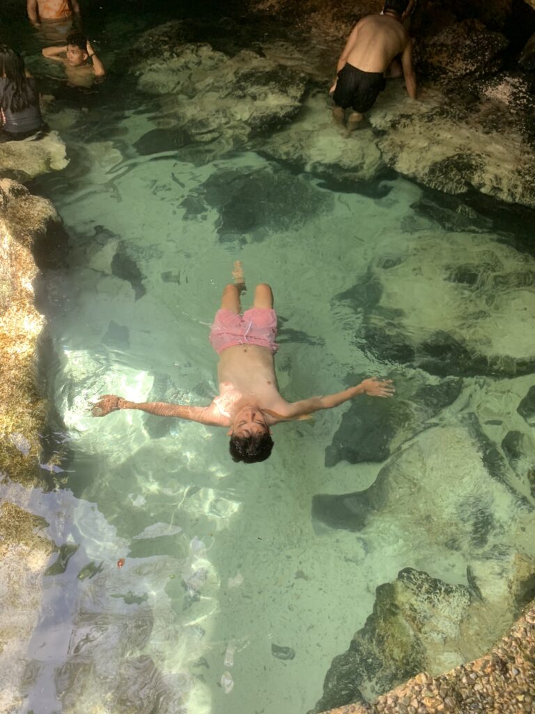 Right outside the cave is a big swimming pool where you’re allowed to dip if you wear the right swimming clothing. Further beyond the pool is Paradise Beach, a quiet stretch of powdery white sand and turquoise water. It’s less crowded than other beaches with a jagged shoreline where you can take pictures, hide under for shade, or cliff dive when the tide is high. Don’t get confused looking for the cave, as these three amenities are all inside a private resort, so you have to go through a large gate with a fountain and a pavilion.